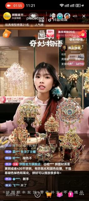 点开拼酷的抖音直播间,就像踏进了“沉浸式手工体验作坊”。主播不再强调卖货,而是和用户一块儿同步拼装,实时解答卡扣技巧,甚至还有“翻车救援”这种贴心的环节,让人感受到品牌的温度和情绪陪伴。